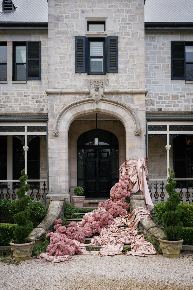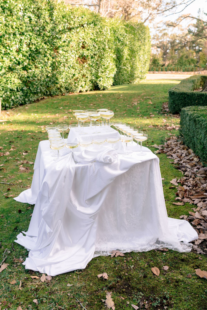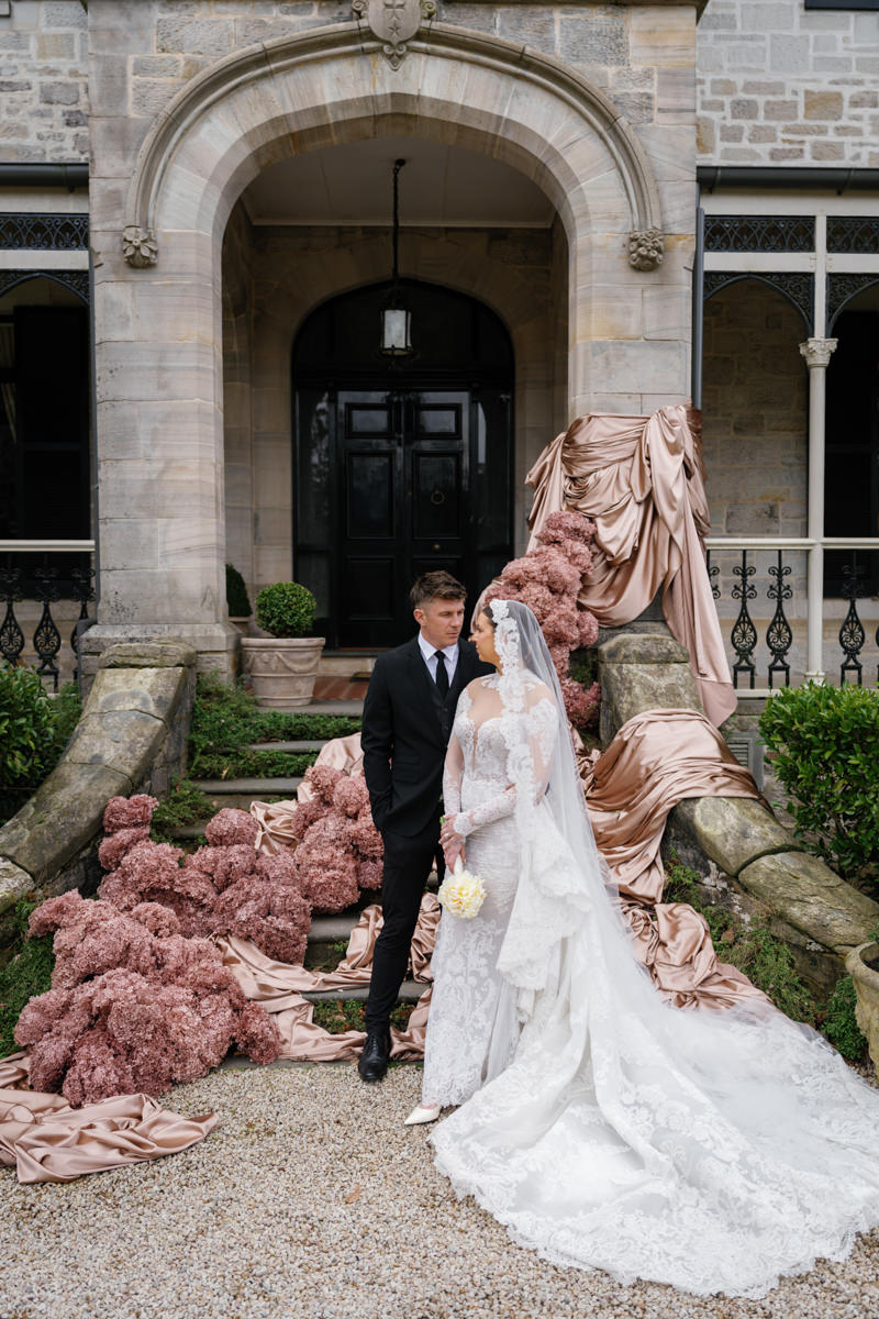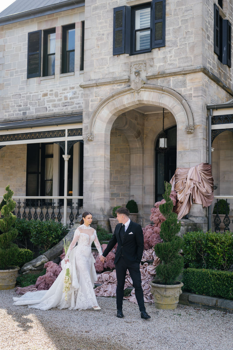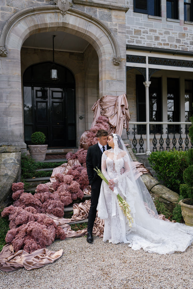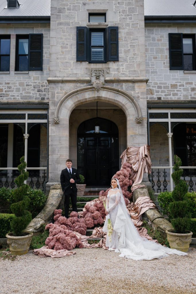 Studio Botanic created florals that felt architectural and intentional, complementing the stonework and symmetry of the estate beautifully. Maison Paper travelled from Sydney to bring in custom textiles that added softness, depth and movement to each scene.